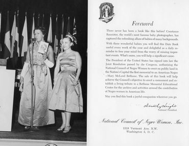 Most excitingly, thanks to Lynda Bannister (owner of “The Bannister Vault” and daughter of Constance Bannister, who was known as “The world-famous baby photographer"), IC Spencer learned she was one of the Bannister Babies in a calendar created by African American civil and women's rights activist Dorothy Height, along with Constance Bannister. The Calendar was for a fundraiser to raise money for the Mary Mcleod Bethune Memorial. The monument is the first statue erected on public land in Washington, D.C. to honor an African American and a woman.